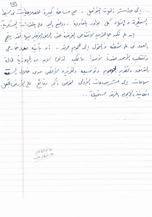 وتختم الرسالة: «إن لم نكن جاهزين لاقتناص الفرصة حتى الرمق الأخير فيها، فقد ينجح العدو في لمِّ شعثه والتحول إلى هجوم مرتد أو بآلية مدد خارجي، وتنقلب الأمور ضدنا لأسوأ ما يمكن؛ لذلك لا بد من جاهزية لحالة التدفق، وتطوير الهجوم، وتوسيعه وتعزيزه لأقصى مدى خلال الساعات الست إلى الساعات العشر الأولى لفرض أكبر وقائع على الأرض تجعل إمكانية الهجوم المرتد مستحيلة».