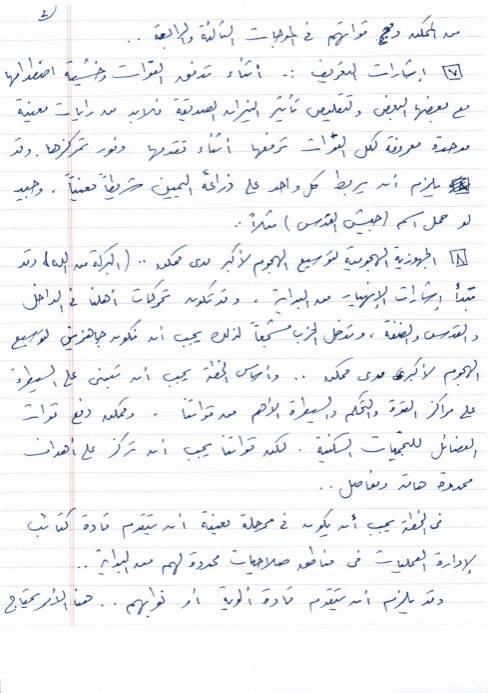 وتتضمن الرسالة خطة تفصيلية للهجوم بشكل دقيق ومفصل، مثل اختراق الجدار في 3 مواقع، وشن هجمات بموجات متلاحقة، وتوزيع المسؤوليات بين القادة وفق تدريج عسكري وغير ذلك من المهام الأمنية.