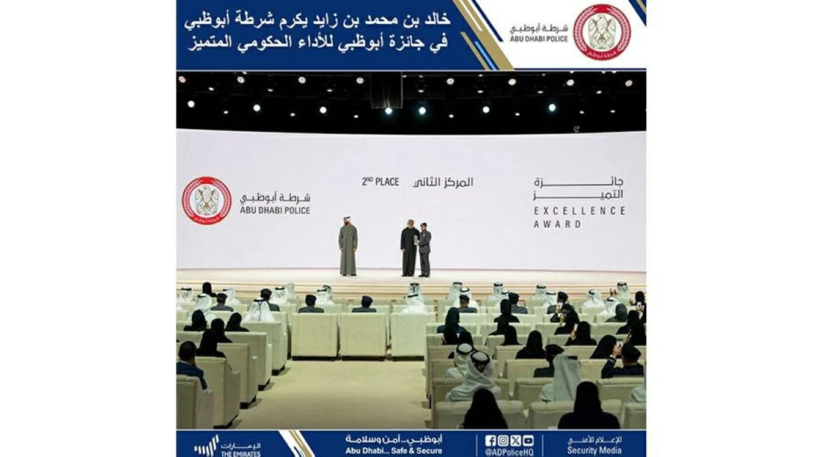 حصدت القيادة العامة لشرطة أبوظبي على المركز الثاني ضمن «جائزة أبوظبي للأداء الحكومي المتميز»، تكريماً لها على مبادراتها المجتمعية، ومن أهمها حملة الشرطة المجتمعية «كلنا شرطة» التي أسهمت في استقطاب أكثر من 80,000 متطوع من 160 جنسية، إضافة إلى تقليص متوسط زمن الاستجابة للحالات الطارئة إلى 6.25 دقيقة في عام 2025، في إنجاز يعكس ريادتها المؤسسية وحرصها على تبني أفضل الممارسات العالمية في تطوير الأداء الحكومي وتعزيز جودة الحياة.وسلم سموَ الشيخ خالد بن محمد بن زايد آل نهيان، ولي عهد أبوظبي رئيس المجلس التنفيذي لإمارة أبوظبي، الجائزة إلى اللواء أحمد سيف بن زيتون المهيري قائد عام شرطة أبوظبي، خلال حفل تكريم الجهات الفائزة، بحضور عدد من كبار المسؤولين وممثلي الجهات الحكومية.وأكد اللواء أحمد سيف بن زيتون المهيري أن هذا الإنجاز يأتي ترجمة لدعم وتوجيهات القيادة الرشيدة، وحرصها على ترسيخ منظومة عمل حكومي متكاملة تقوم على التميز والابتكار والاستباقية، مشيراً إلى أن شرطة أبوظبي تواصل تطوير خدماتها وفق أفضل الممارسات العالمية، بما يعزز جودة الحياة ويواكب تطلعات المجتمع.وأوضح أن الحصول على المركز الثاني في جائزة أبوظبي للأداء الحكومي المتميز يعكس كفاءة الكوادر الشرطية وتميزها في تنفيذ المبادرات التطويرية، وتعزيز الشراكات الاستراتيجية مع مختلف الجهات، بما يحقق التكامل المؤسسي ويرتقي بمستوى الخدمات المقدمة.وأضاف أن شرطة أبوظبي ماضية في تبني الحلول الذكية والابتكارات الحديثة، واستثمار التقنيات المتقدمة، بما يدعم استدامة الأمن والأمان، ويعزز مكانة إمارة أبوظبي في مؤشرات التنافسية العالمية.ويضاف هذا الإنجاز إلى سجل شرطة أبوظبي الحافل بالجوائز والإنجازات، مؤكداً التزامها المستمر بتطوير منظومة العمل الأمني والشرطي، بما يحقق أعلى مستويات الكفاءة والجاهزية، ويعزز ثقة المجتمع.