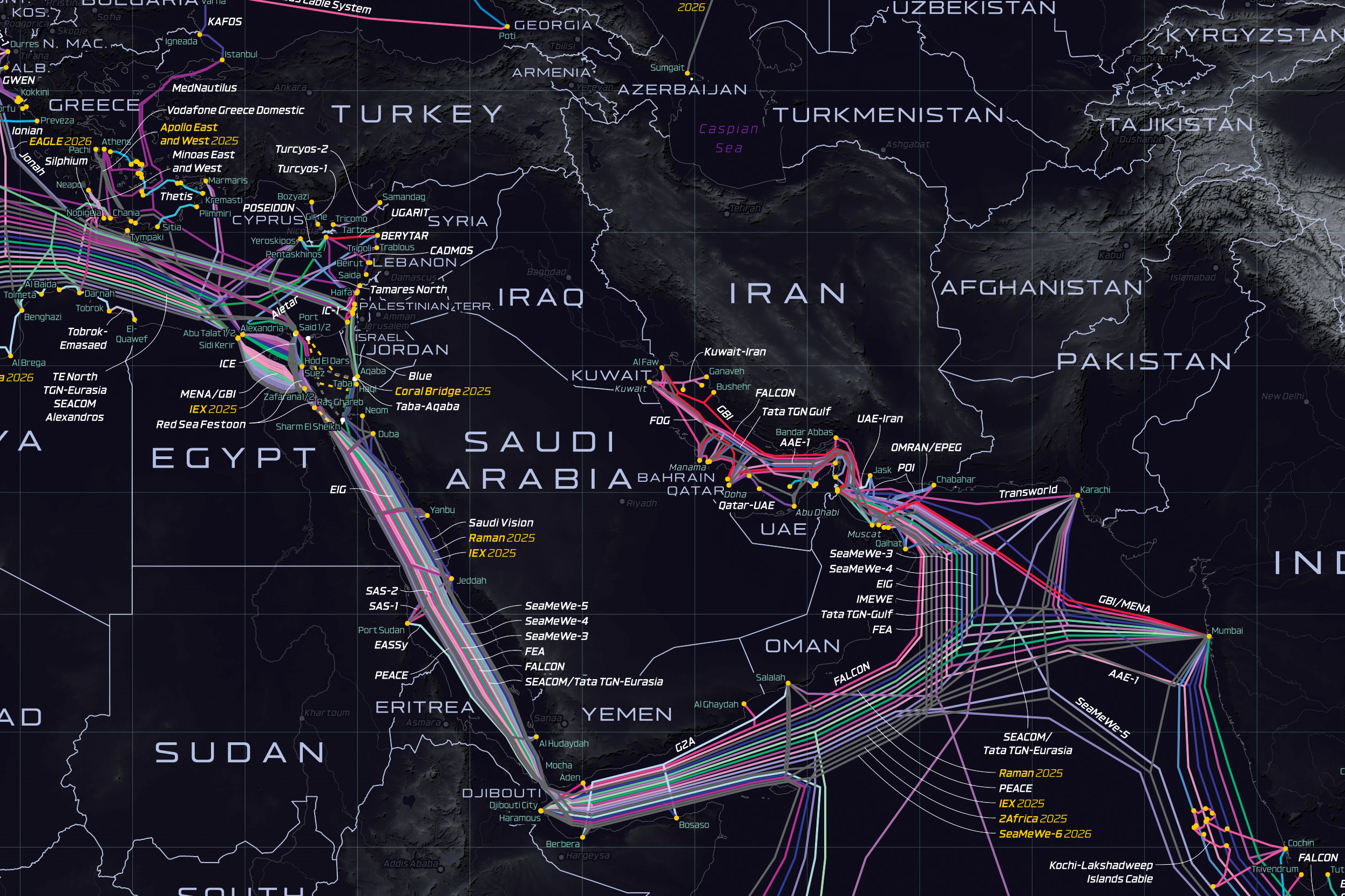 تمر عبر هذه المنطقة حوالي 17% من حركة الإنترنت العالمية، بينما تعتمد أكثر من 90% من الاتصالات بين أوروبا وآسيا على هذا المسار الذي يمر عبر قناة السويس المصرية.