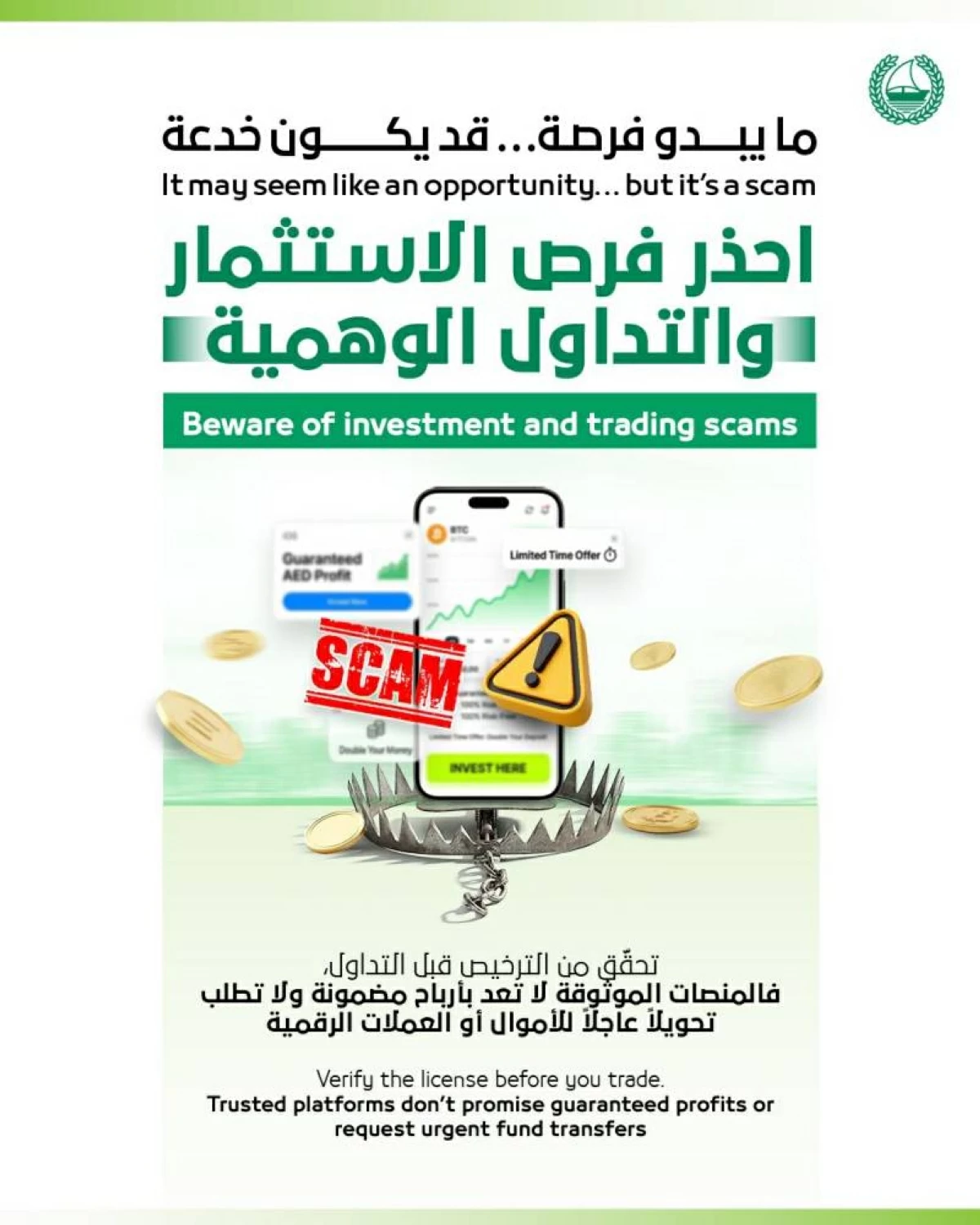 شرطة دبي تحذر من الوقوع ضحية لفرص الاستثمار والتداول الوهمية