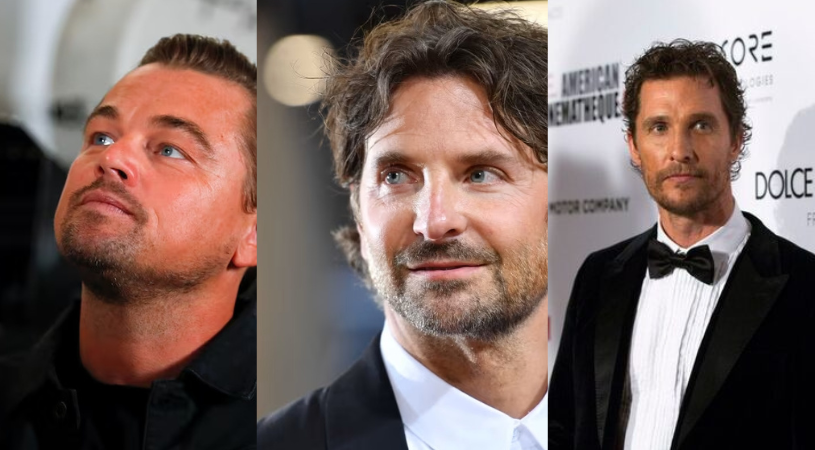 الممثلون ماثيو ماكونهي وبرادلي كوبر وليوناردو دي كابريو من مقاطعي مزيل التعرق (أ.ف.ب – رويترز)