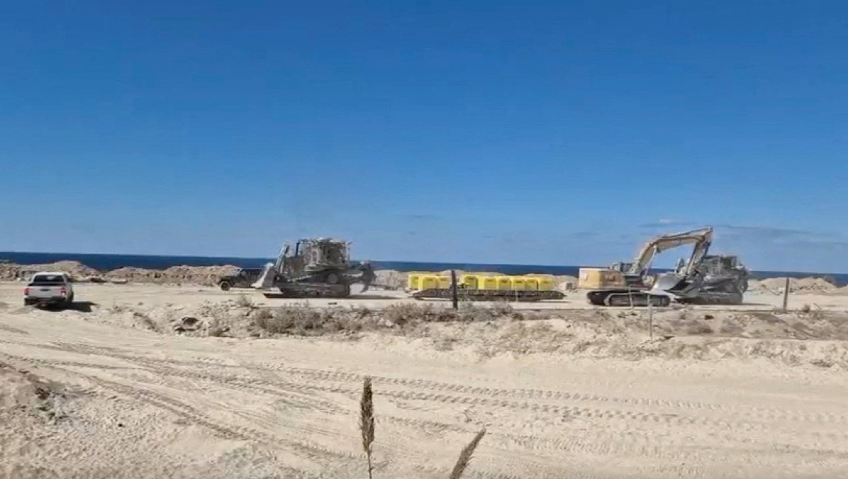 صورة من فيديو لقوة إسرائيلية تعمل على ترسيم «الخط الأصفر» في غزة الاثنين (رويترز)